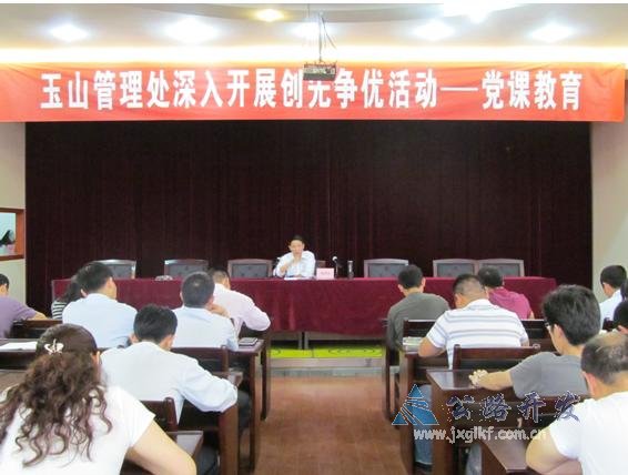 5月24日,梨温公司党委副书记周洪达在创先争优联系点玉山管理处上党课。该处领导班子、站长、收费班长及机关人员共40余人参加学习。