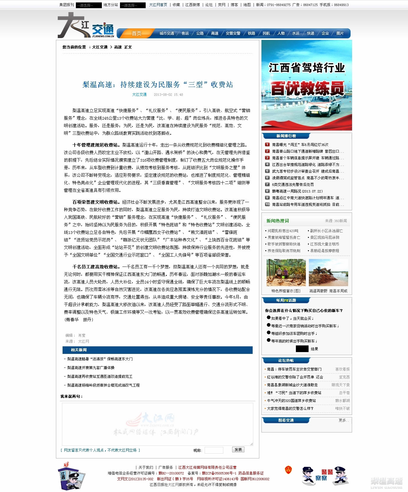 千名员工建高效收费站。一千名员工有一千个梦想,但梨温高速人还有一个共同的梦想:就是无论何时,都要用实干精神保证江西高速东大门的畅通。历年春运,面对浙赣如潮水一般的春运车流,该高速人员大轮岗,人员大补位,全员24小时坚守保通全线,确保了巨大车流在梨温线上的顺畅通行无阻。历次雨雪冰冻等自然灾害进犯,该高速在各类应急预案演练充分的情况下,各收费站配合无间,也确保了车辆分流有序,交通处置得当,从未造成重大拥堵、安全等责任事故。今年5月,由于超设计承载能力,梨温高速大修改造以来,该高速人员经受了路面单幅通行、交通分流形式不明、费率调整以及特殊天气、极端工作环境等又一次考验,以一贯高效收费管理确保这条高速运转如常。(梅春华 胡丹)