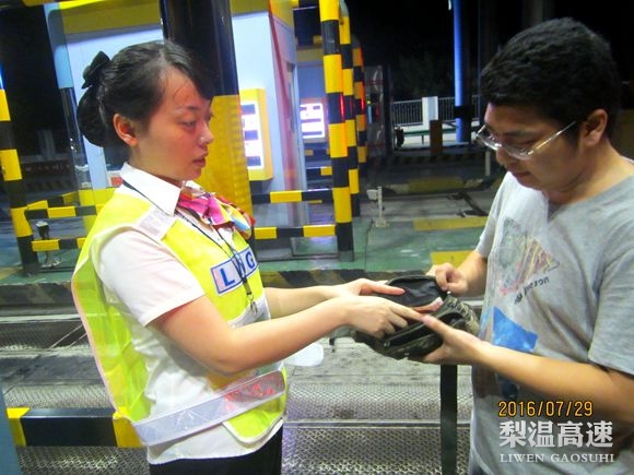 22:30左右,失主人来到收费站取回了钱包,连夸鹰西站姑娘拾金不昧,不愧是江西高速上的五星级收费站。