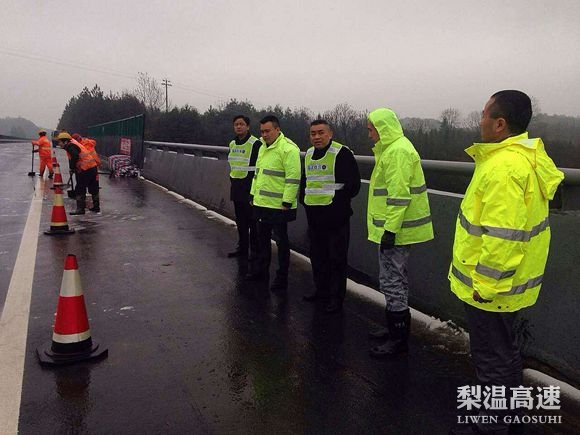 及时成立了管理处及各站、所、部门抗冰除雪保畅工作领导小组,做到组织机构健全,组织成立抗冰雪突击队,包括全体干部职工,小修队,保洁队人员在内共200多人,随时准备奔赴冰雪严重路段进行铲冰除雪。组织了有铲雪车、洒盐车、铁锹、雪铲、麻袋、工业盐、安全锥、标志牌等机械设备和物资。对重点路段大中桥梁、陡坡、弯道路段进行了重点布防,实行全天候24小时值班和铲冰除雪,责任到队伍、到人员。加强对收费站文明服务工作,确保出站车辆快速通行,保证因冰雪滞留收费站司乘人员不挨饿、不受冻,得到有效帮助。加强与高速交警、路政等部门的联勤联动,全力做好抗冰除雪保畅工作和维护上路抗冰保畅队伍及人员的安全。