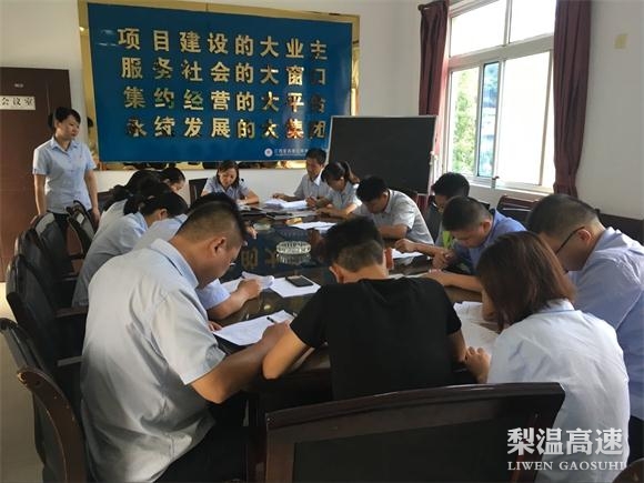 近日,南昌南中心上饶东收费站利用站务会后时间及收费员下班时间,进行每周二次的业务知识考试。