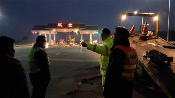 10多车辆相撞追尾后,双金站工作人员积极交警、路政将所有事故车辆先清除出事故现场,5点多,这次事故人员20多人被安置在双金站会议室。