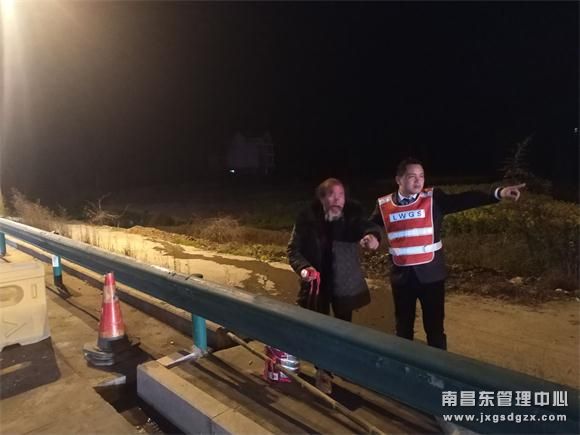 3月13日深夜,一位老人神情显得十分焦急,在南昌南管理中心玉山收费站入口处徘徊。