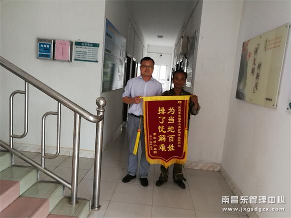 5月27日10时许,里奖村干部代表全村老百姓来到志光站办公地点,赠送锦旗表示感谢。( 程锐)