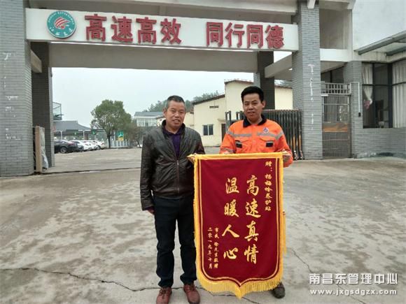“感谢你们在我最无助的时候,及时伸出援手帮我脱离了困境”。10月29日,上饶市民徐先生将一面代表着肯定与感激的锦旗送到了南昌南管理中心杨梅岭养护站。