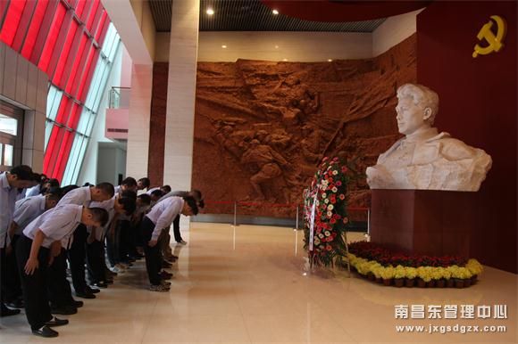 密雨如林,苍松翠青。早间十点,160公里外的方志敏烈士纪念馆,迎来了南昌南管理中心的一批党员,他们以“牢记使命、担当作为”为出发点,来此寻找红色之心、初心之路。汉白玉的方志敏烈士雕像庄严肃穆,党委委员周洪达、万良红同志趋前整理挽联,带着党员们敬献花圈,向民族英雄、革命烈士方志敏雕像默哀并三鞠躬。