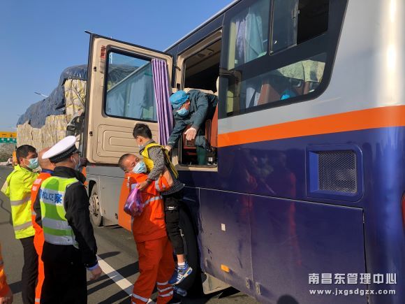 接到报警后,该中队了解情况后,火速组织员工赶赴现场,并通过交警紧急联系了当地的120救护车和119消防车。抵达后,该中队第一时间为事故现场做好安全围蔽,防止产生二次事故。随后,根据驾驶员的指引,队员们想办法打开了应急车门,同交警将车上乘客从应急车门解救出来,并配合医护人员将受伤人员一一送至救护车上。