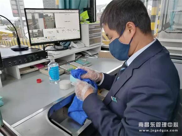 回到单位后他立即投入到紧张的工作中,他接过班员手中的扫把和消毒喷壶,不留死角的进行清扫和消毒,特别是对收费键盘、CPC卡等每天与收费人员与司乘接触的设施。他时刻叮嘱大家:口罩、手套要戴好,要经常洗手,废弃的口罩和手套不要乱扔,统一放到口罩废弃处。他经常自嘲的说“大家不要嫌我啰嗦,疫情面前,大家好了才是真的好”。