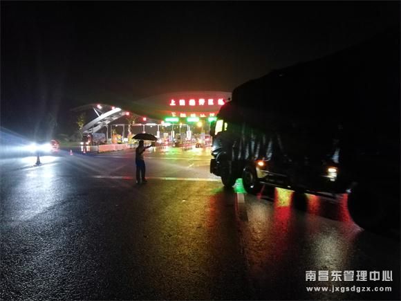 收费广场已经忙开了,夜里行驶的车辆以货车为主,收费站的通道已全部开启,每个车道都有车辆在通行,龙门架上的LED屏幕播放着各种提示信息,站长正带所有值守的同事们在广场各个位置指挥引导车辆,他们有的穿着雨衣,有的撑着伞,不过在暴雨下我已没法分辨出是谁了。我在各个车道之间穿梭,帮同事们分配传递通行卡、票据,一遍遍向司乘解释分流的原因。不一会儿,在广场的车辆已经在各个车道有序排队通行。