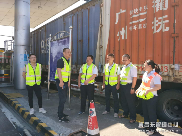 8月18日、19日,南昌南管理中心总经理万良红赴一线督导收费站保通保畅工作,中心副总经理俞毓玲,综合行政部、收费管理部相关负责人陪同。