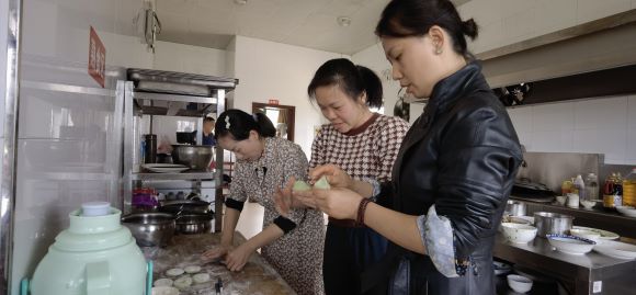 这天,该所女员工纷纷来到厨房,分工协作,洗艾叶、腌菜、剥笋、切腊肉、和面团、切剂子、擀面皮,个个都信手拈来。随后,大家各显神通,将自己的看家本领都展示出来,包上豆沙或是用腊肉、笋、腌菜等配料制作的馅,小小的艾米果有的像包子,有的像饺子,有的像大饼……,各种各样。