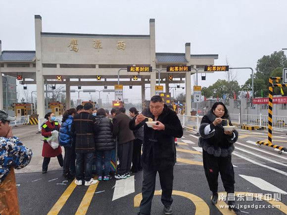 清晨6点30分,正在上早班的两位姑娘便推着“彩虹号服务车”穿梭于收费站广场的迷雾里、车流中,每半个小时一趟,为为滞留在收费广场的司乘群众众加热开水、方便面、香喷喷的面条等力所能及的服务和帮助。