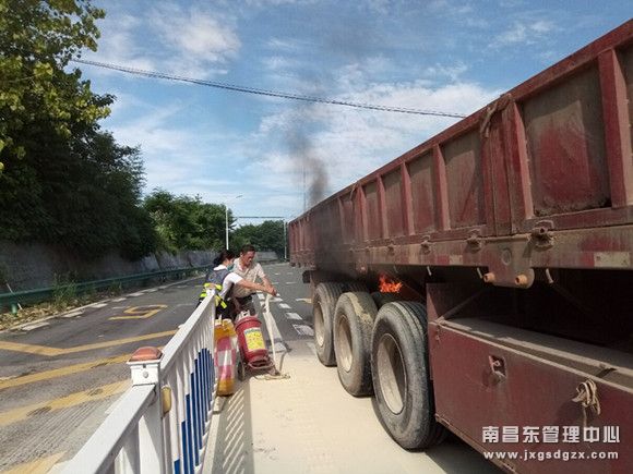 7月9日,省交投集团南昌南管理中心鹰潭西收费站女班长成功扑救一辆着火大挂车。