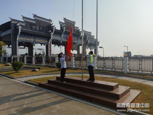 金秋十月,秋高气爽,欢送中秋,喜迎国庆。为弘扬爱国主义精神,增强职工爱国情感,南昌南管理中心新干北收费站举行庄严的升国旗仪式。