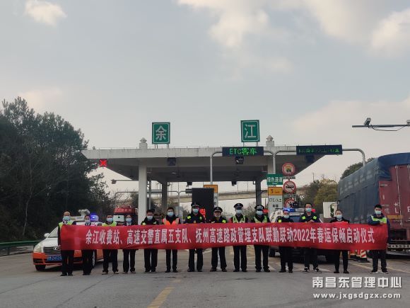 1月11日下午,余江收费站联合高速交警、路政部门在收费站广场举行2022年春运保畅启动仪式、超载超限专项整治行动。