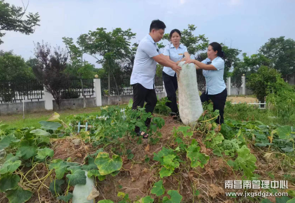 时下正值冬瓜成熟季节。近日,南昌南管理中心双金收费站篱笆小院里一片丰收景象,满地都是比人高的冬瓜,职工们你一言我一语,脸上洋溢着幸福的笑容。
