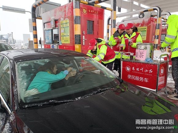 大雪纷飞,寒潮来袭。1月22日,南昌南管理中心丰城东收费站志愿者们开展了“赠姜茶、送温暖”行动。
