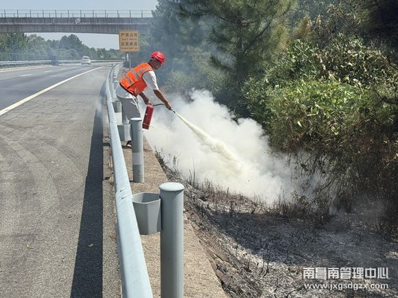 “东昌高速K24+500上海方向边坡发现明火,火势正逐步蔓延,请立即前往处置!”9月5日10时56分,南昌南管理中心罗湖养护站在日常巡查途中接到监控中心紧急通知后,立即调转方向,化身“救火卫士”携带灭火器等应急工具全速奔赴现场,快速开展灭火作业,成功消除安全隐患,保障道路通行秩序。